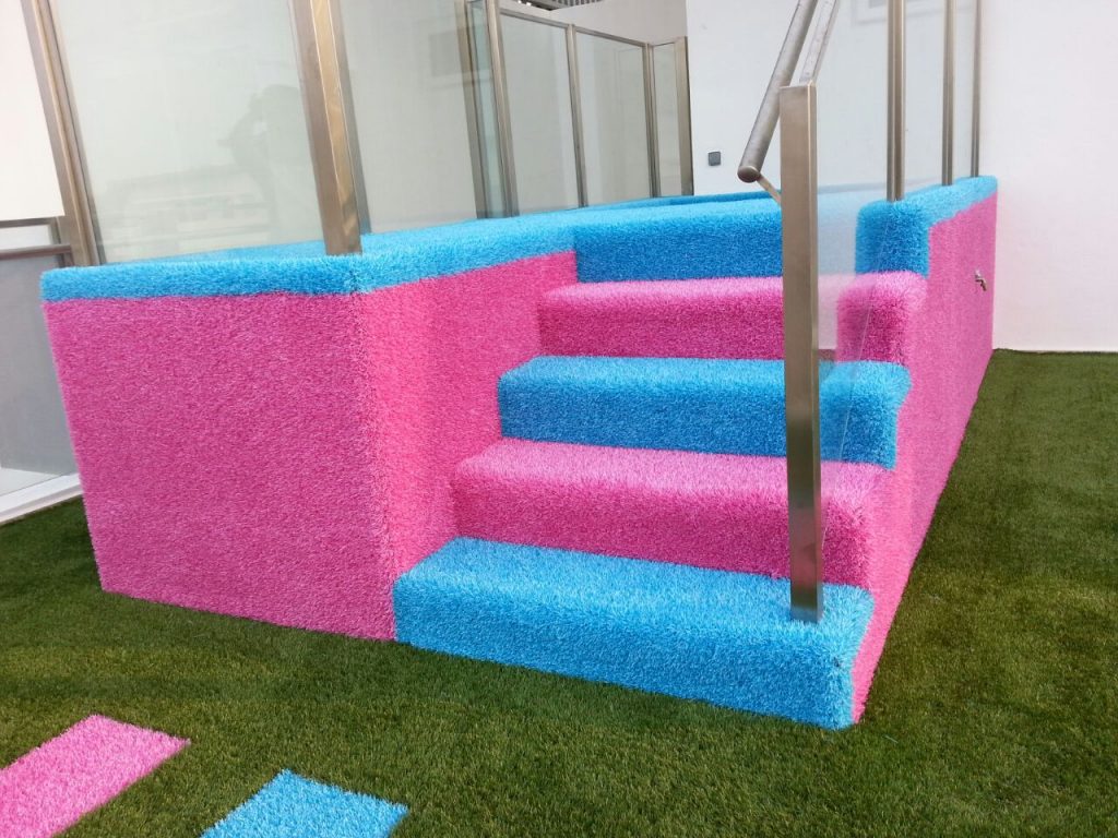 Artificial grass looks great on walls, too, especially in commercial landscaping. They’re the perfect backdrop for your customers to take those Insta-worthy pictures. We even have bold coloured turf to match your branding!
